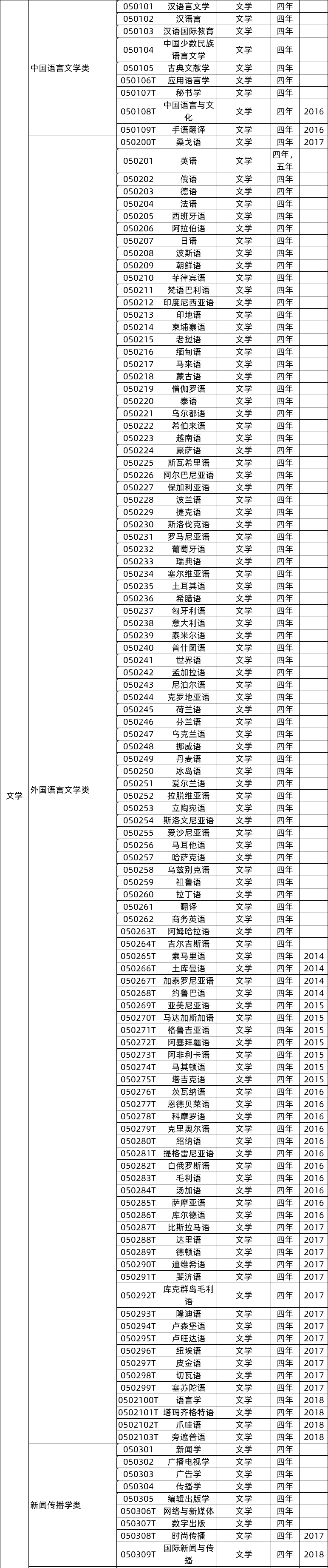 文学门类下有中国语言文学、外国语言文学、新闻传播学等几类。
