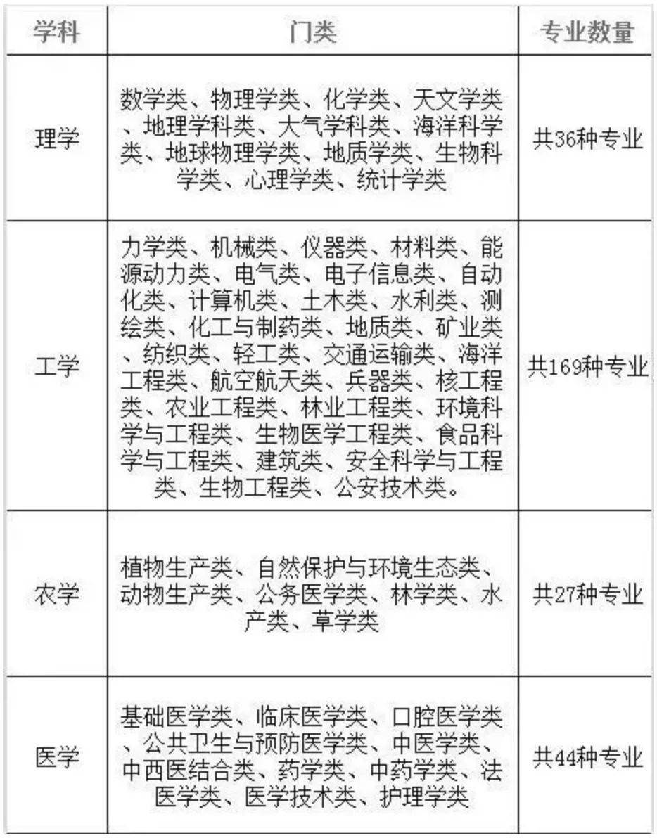 教育部颁布的《新版专业目录》中有506种专业,其中理、工、农、医四大门类就有276个专业,占总专业数的一半以上。