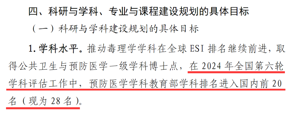 2022年2月,广州医科大学发布“十四五”规划汇编,文件在学科建设目标中提到:在2024年全国第六轮学科评估工作中,预防医学学科教育部学科排名进入国内前20名(现为28名)。