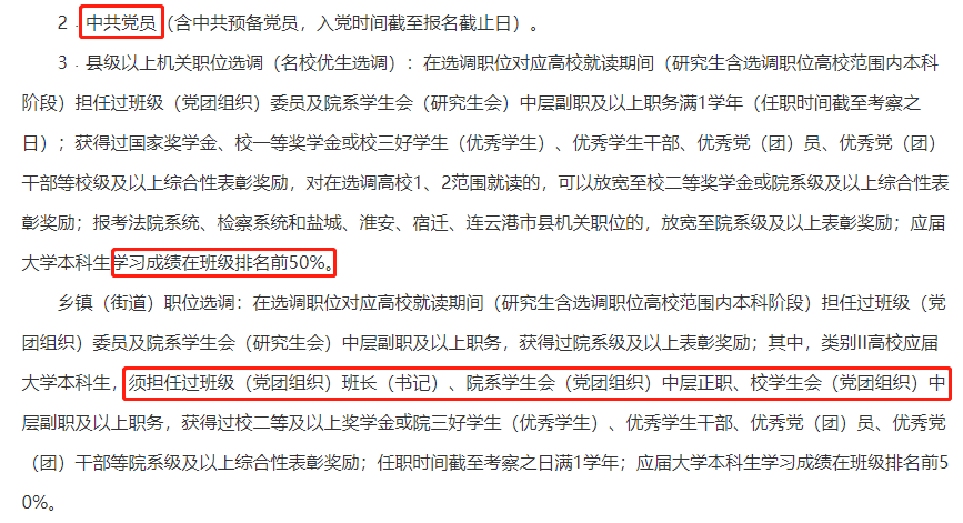 选调生作为储备干部培养,招考门槛较高,招考要求就把大多数人挡在了门外,尤其是选调生中的定向选调,更是非名校不要!