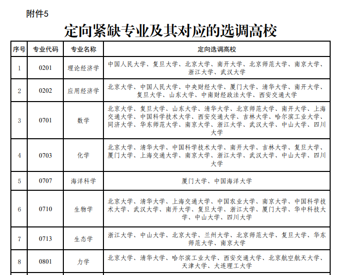 截至11月18日,至少有22个省市发布了定向选调公告。其中,北京、天津、上海、江苏、浙江、福建、山东、广东、安徽、广西、陕西、甘肃、青海、宁夏、黑龙江等15个省市明确公布了选调高校范围名单,山西、江西、云南、辽宁、吉林、四川和重庆等省市也将急需紧缺专业的选调公告发布在相关学校官网,未明确公布选调范围名单。